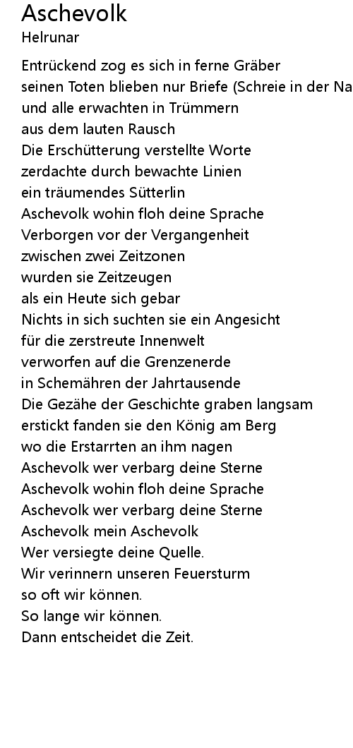 | Aschevolk wohin floh deine Sprache | |