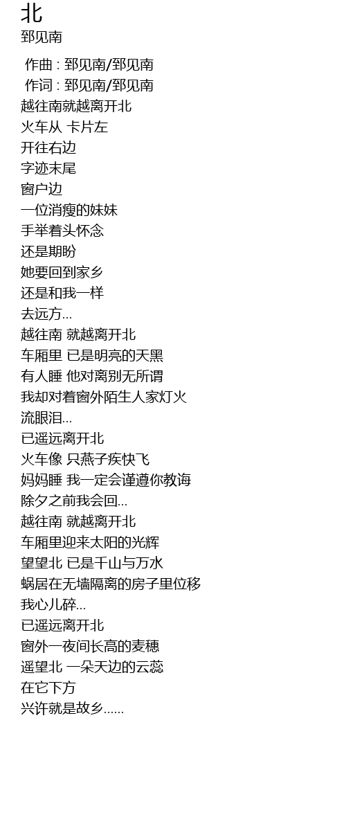 | [01:22.490] | 越往南 就越离开北 |