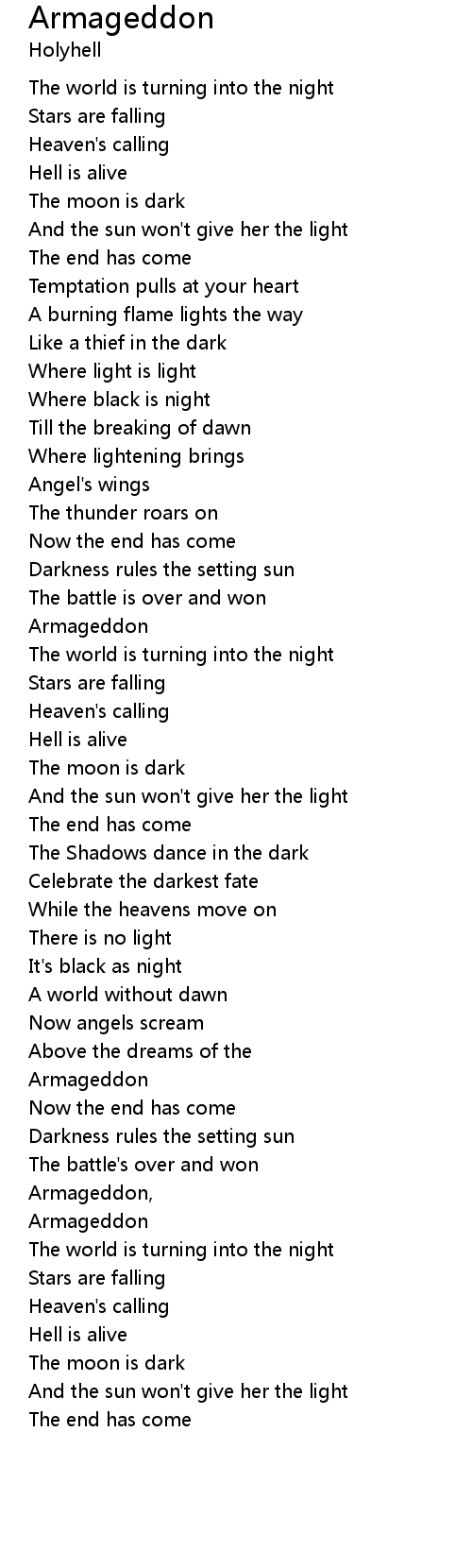 | Armageddon, | |