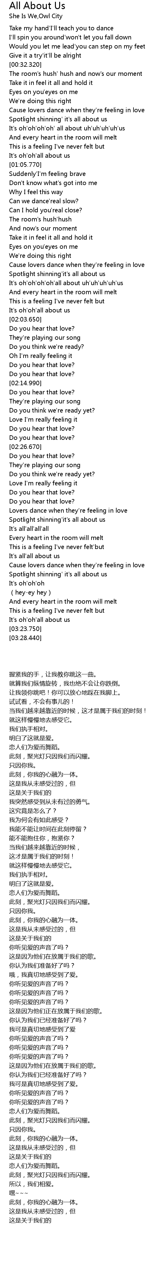 | [02:41.350] | Spotlight shinning'it's all about us |