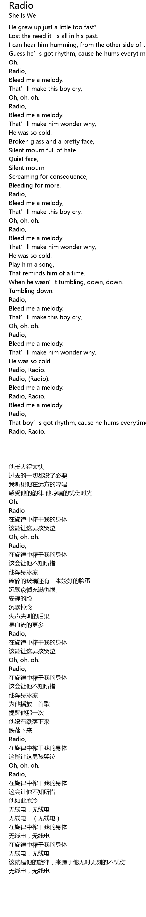 | [01:21.93] | 破碎的玻璃还有一张姣好的脸蛋 |