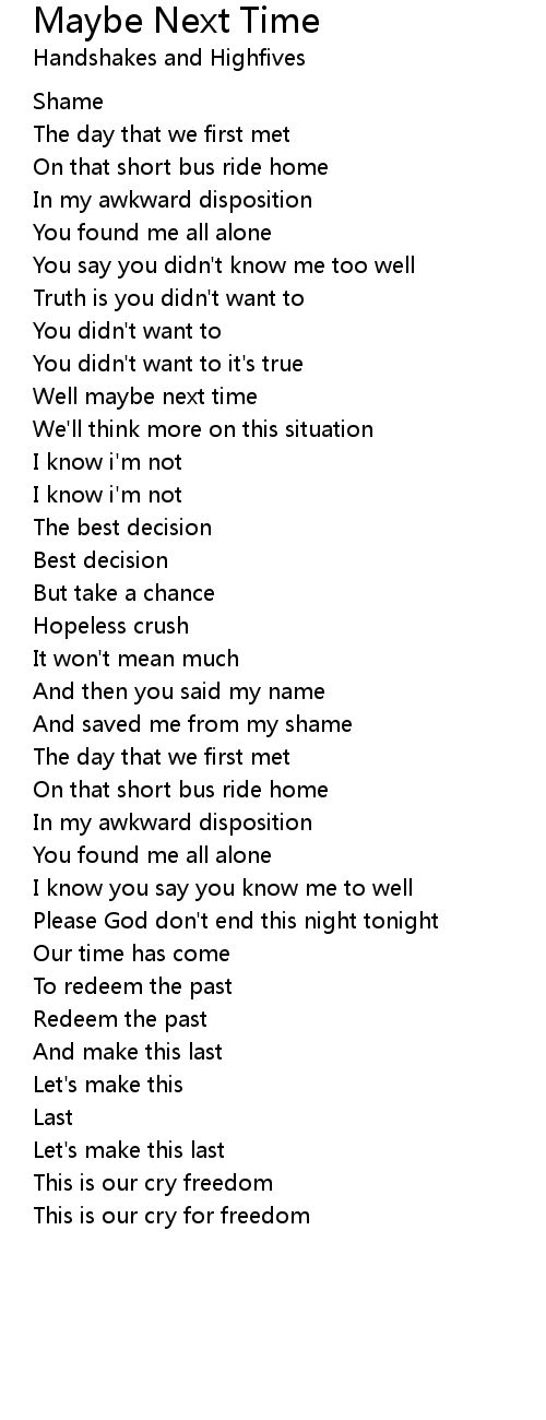 Maybe Next Time 歌词