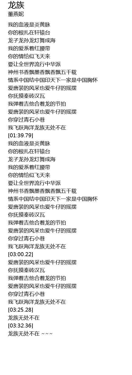| [03:37.07] | 龙族无处不在 ~~~ |