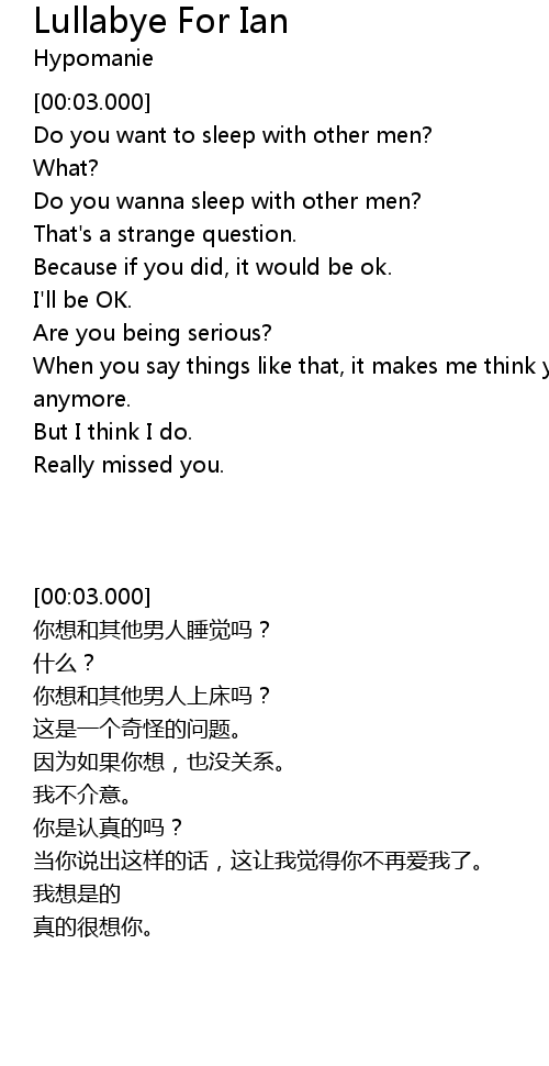 | [01:08.500] | Do you wanna sleep with other men? |