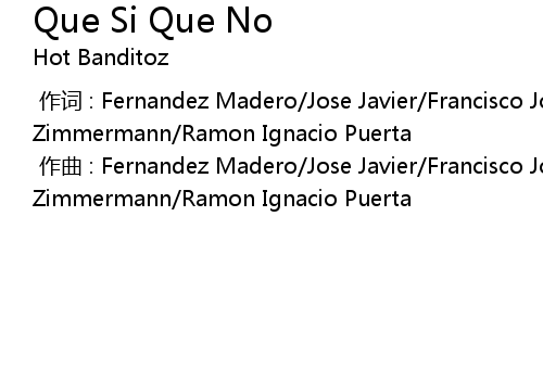 | [00:00.000] | 作曲 : Fernandez Madero/Jose Javier/Francisco Jos Garriga Zimmermann/Ramon Ignacio Puerta |