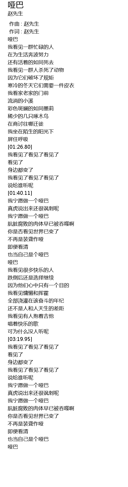 | [01:58.63] | 我宁愿做一个哑巴 |