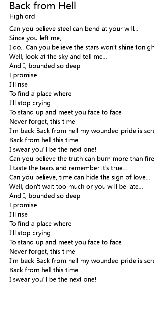 Back from Hell 歌词