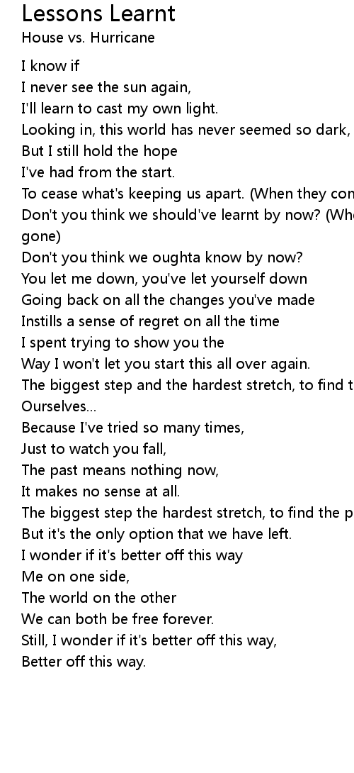 Don't you think we should've learnt by now? (When they come for me, I'll be long gone) |