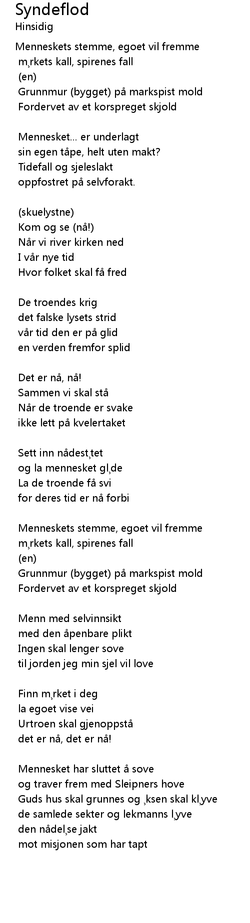 | 歌曲 | Syndeflod |