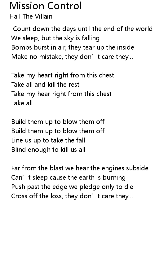| 歌曲 | Mission Control |