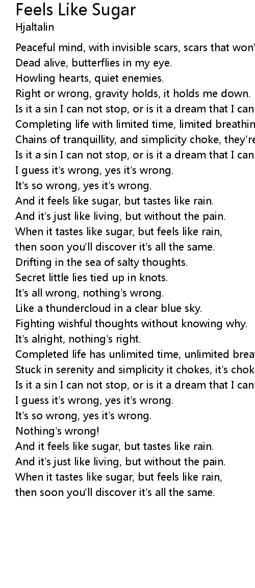 | And it feels like sugar, but tastes like rain. | |