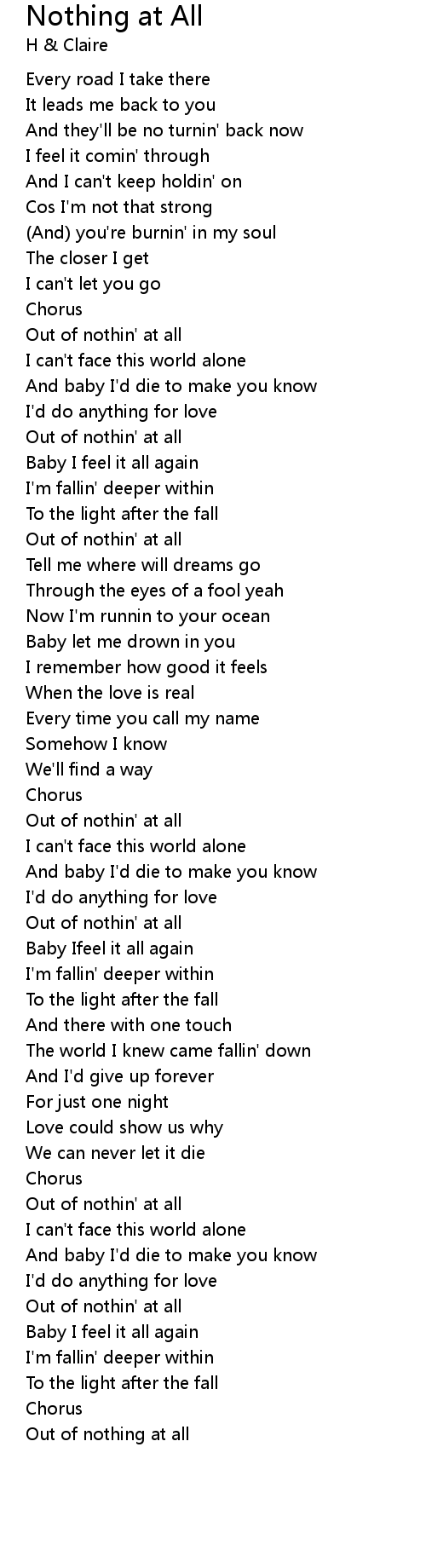 Out of nothin' at all |