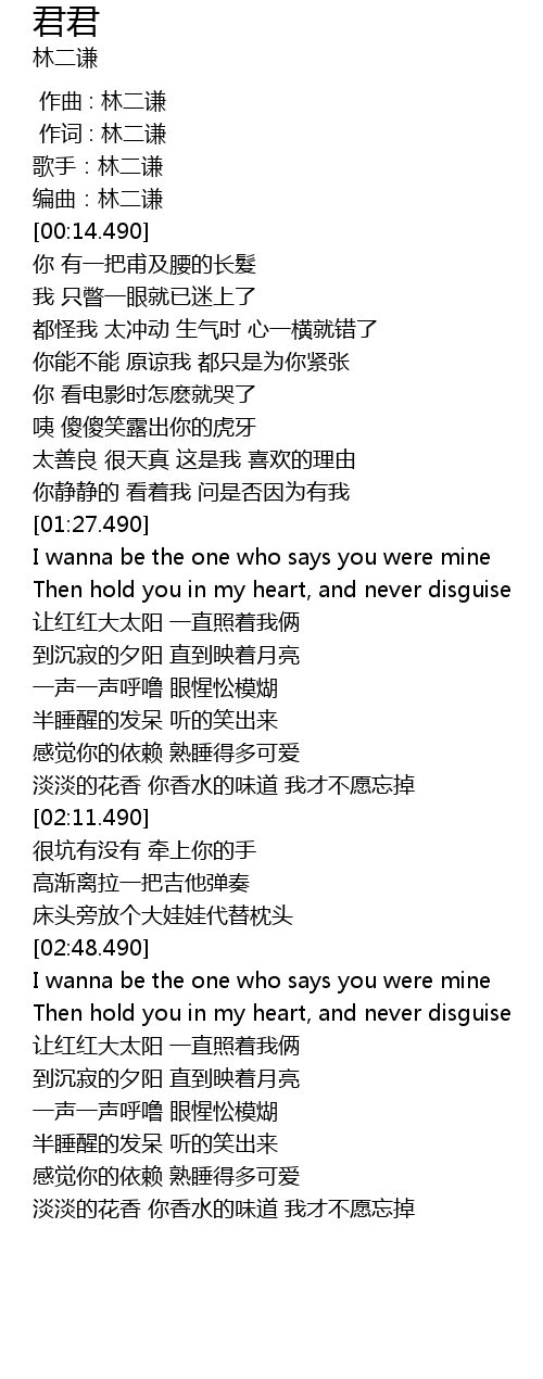 | [00:00.490] | 歌手:林二谦 |