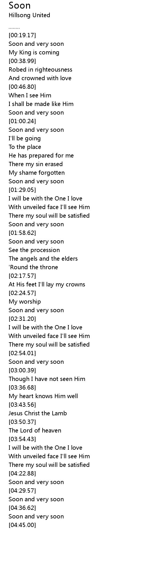 Soon and very soon |