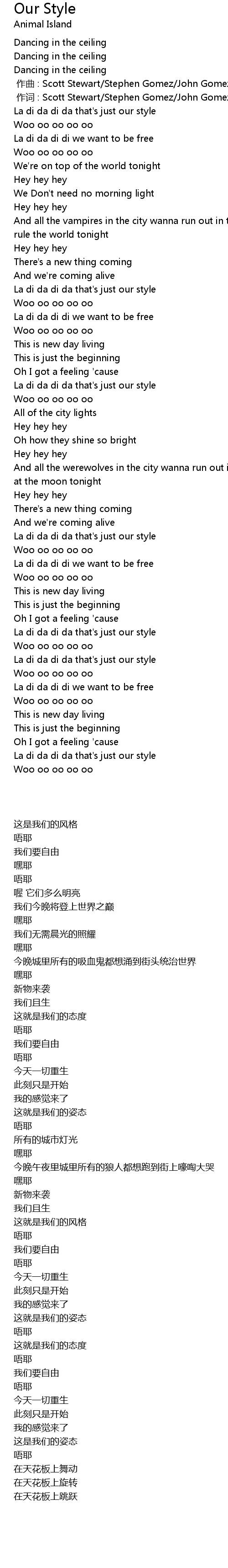 | 歌曲 | Our Style |