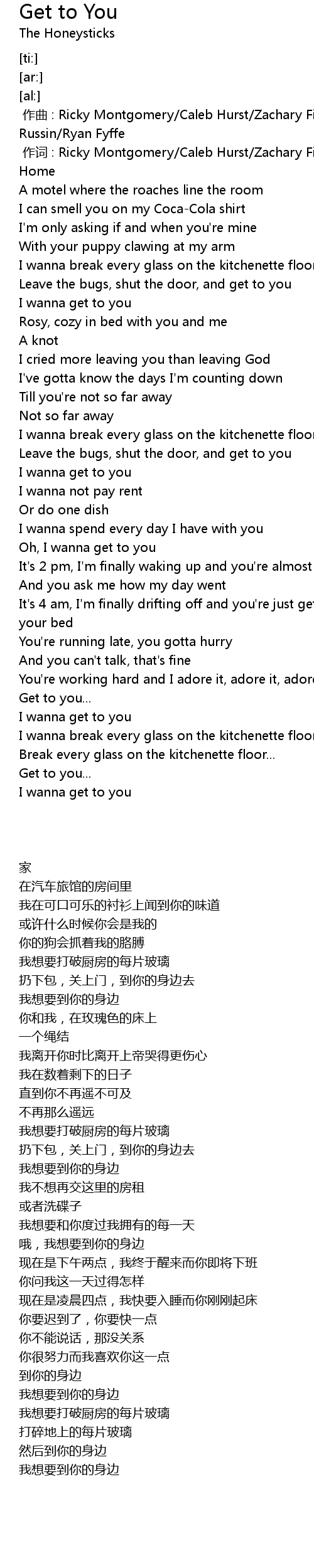 | [01:02.36] | Leave the bugs, shut the door, and get to you |