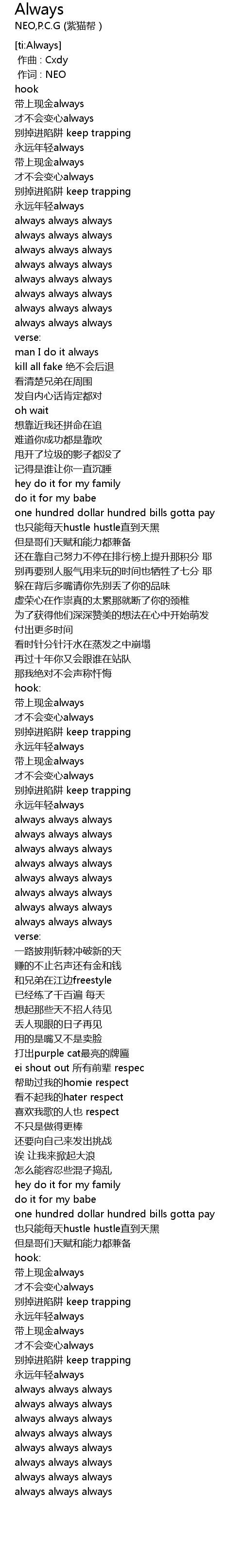 | [00:19.55] | 带上现金always |