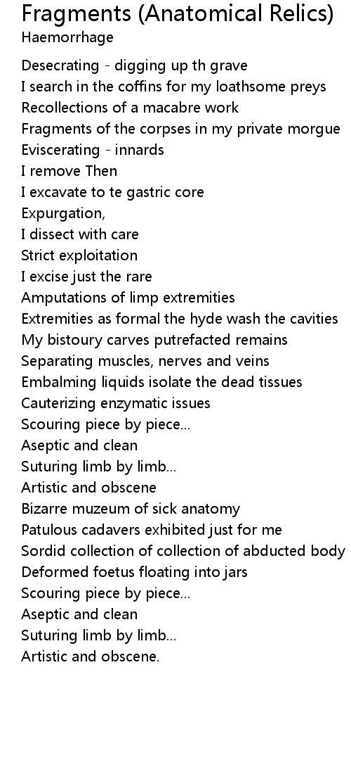 My bistoury carves putrefacted remains |