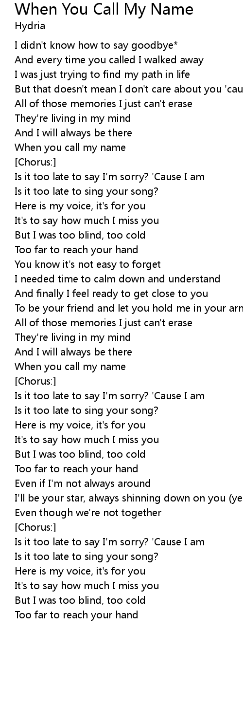 Is it too late to sing your song? |