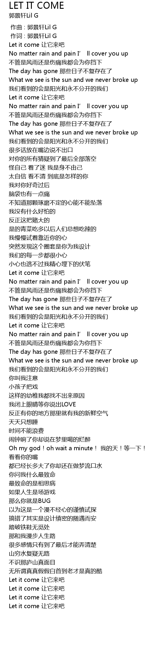 | [02:35.500] | Let it come 让它来吧 |