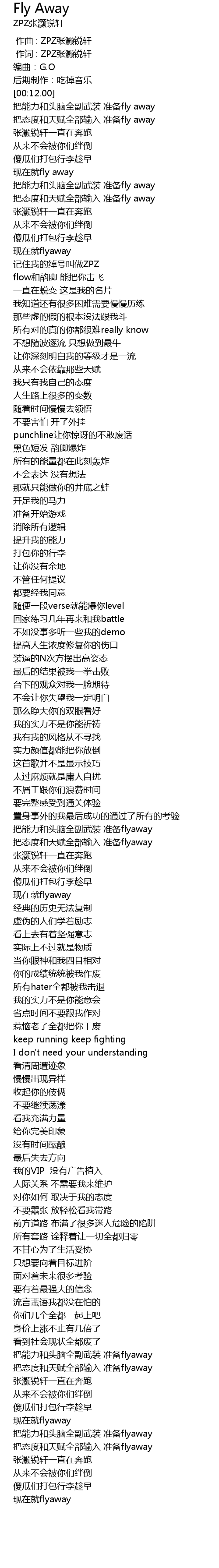 | [00:42.71] | flow hé yùn jiǎo néng bǎ nǐ jī fēi |