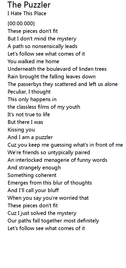 And I am a puzzler |