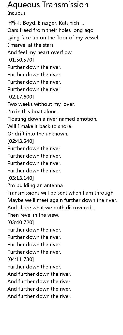 | [02:31.240] | Floating down a river named emotion. |