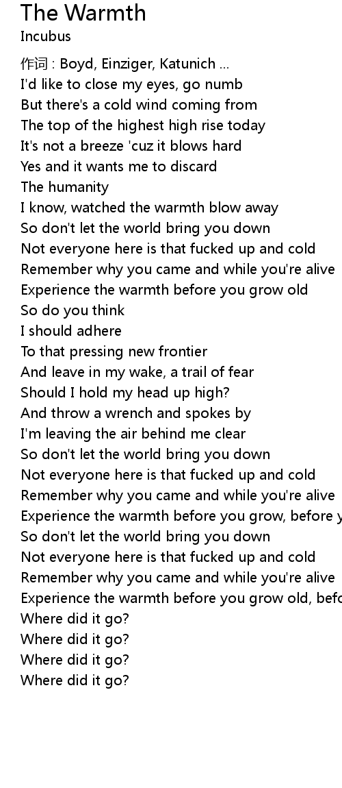 | Experience the warmth before you grow old, before you grow old | |