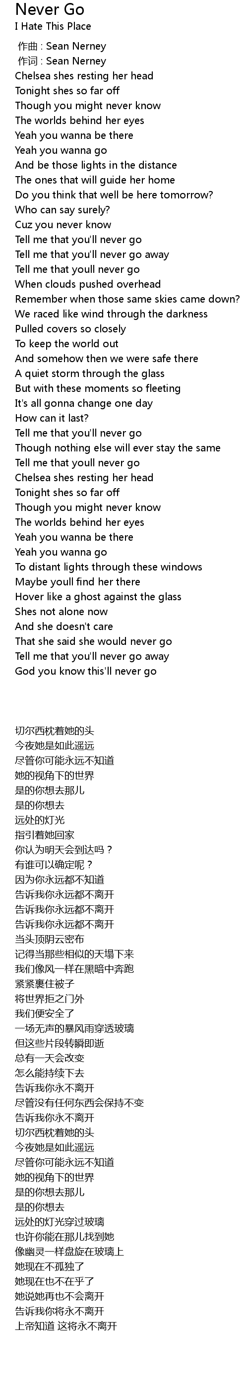| 歌曲 | Never Go |