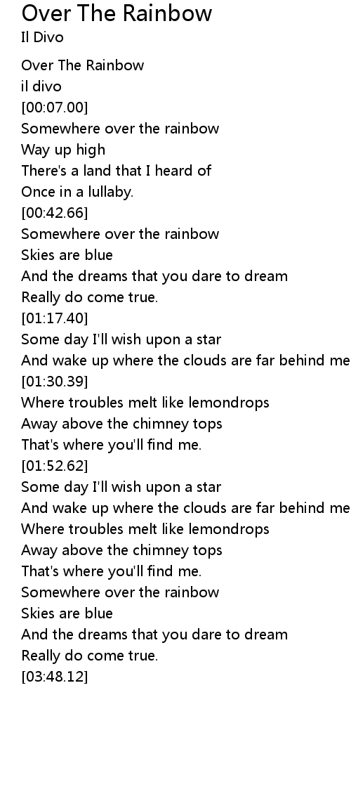 | [03:06.67] | Somewhere over the rainbow |