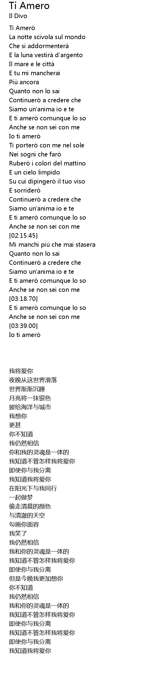 | [03:02.15] | E ti amero comunque lo so |