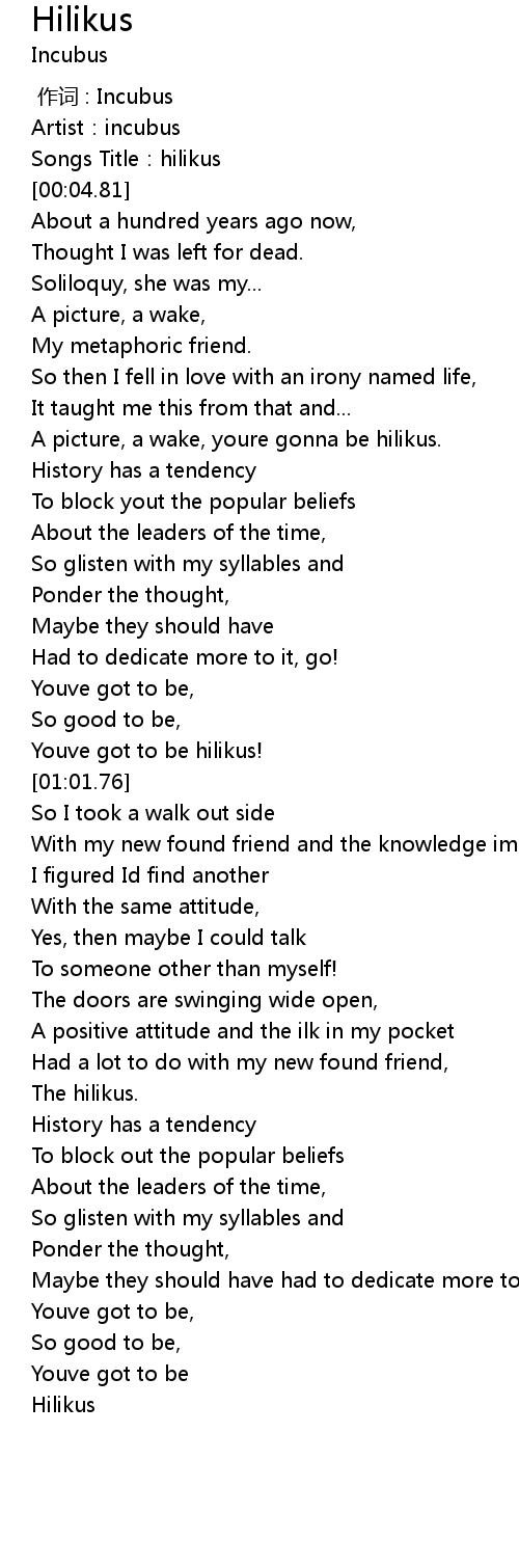 | [00:00.00] | 作词 : Incubus |