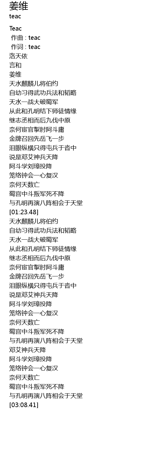 | [00:15.51] | 姜维 |