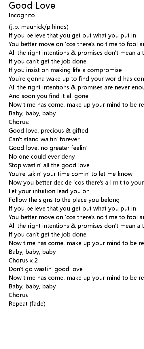 Stop wastin' all the good love |