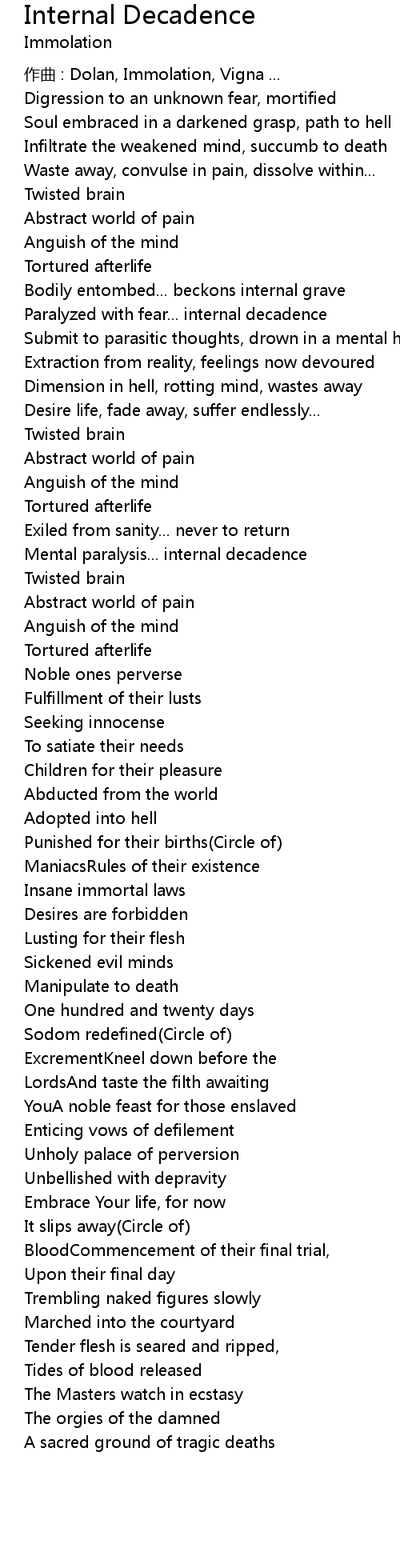 | 作曲 : Dolan, Immolation, Vigna ... | |