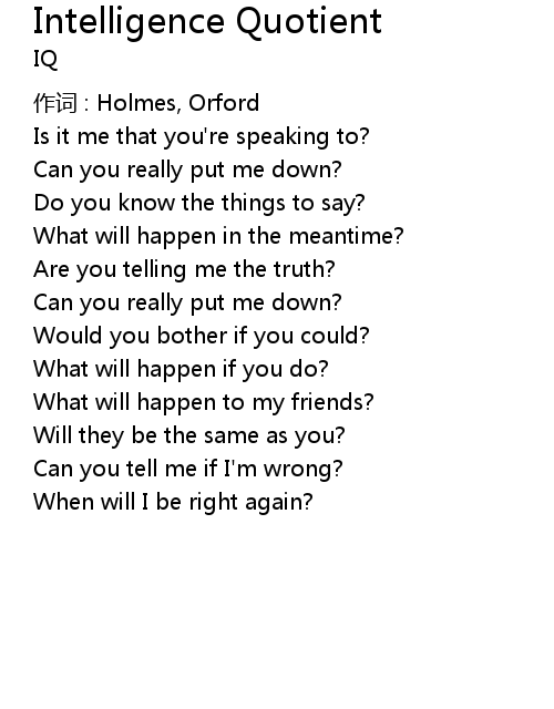 | 歌曲 | Intelligence Quotient |