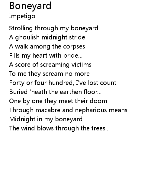 | Midnight in my boneyard | |