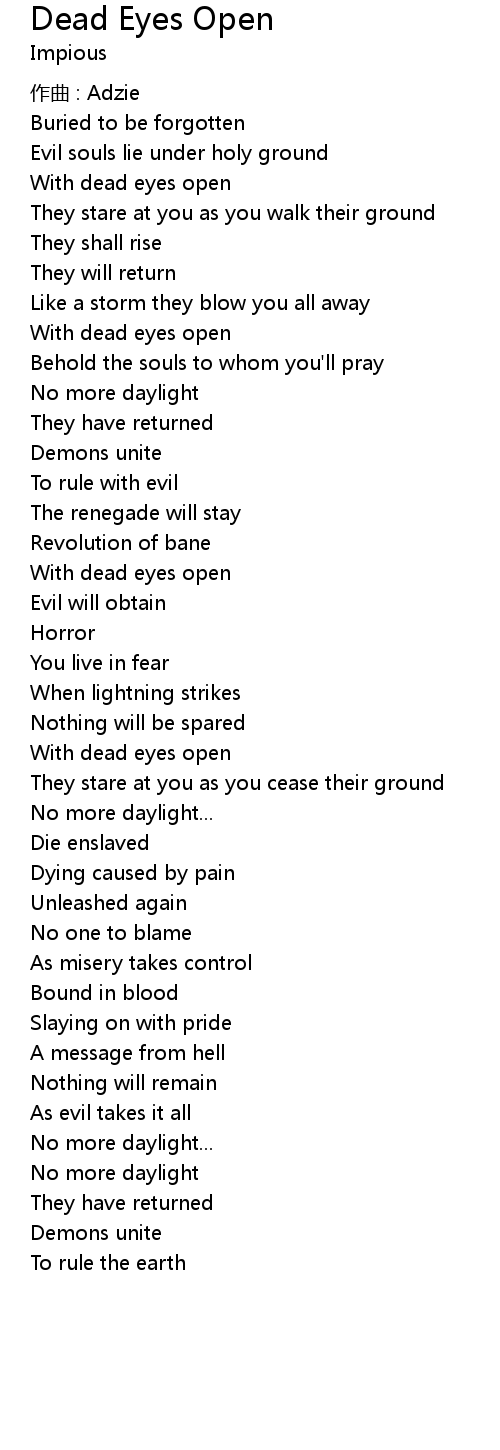 | 歌曲 | Dead Eyes Open |