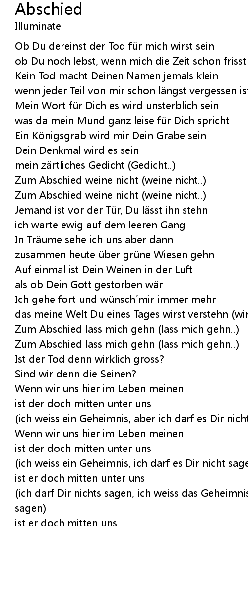 | Zum Abschied lass mich gehn lass mich gehn.. | |