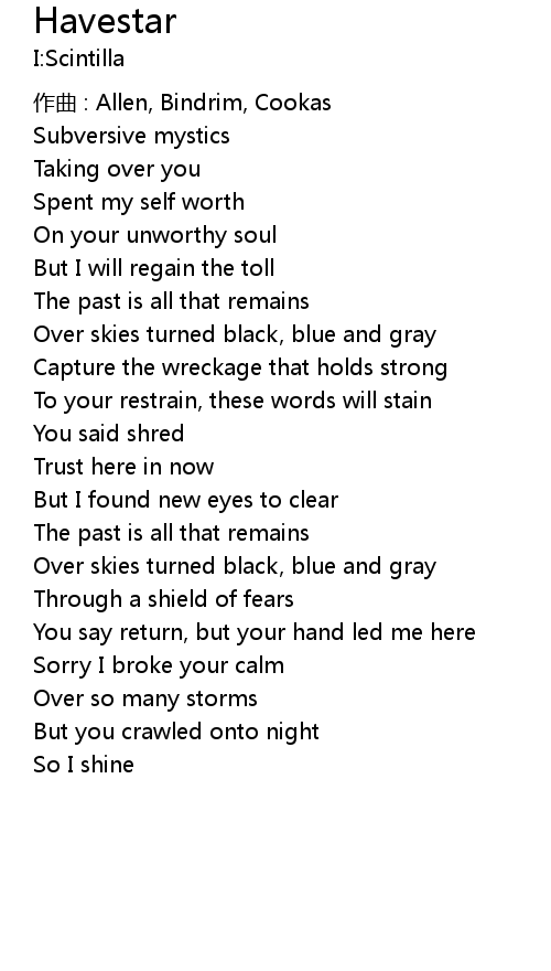 | 歌曲 | Havestar |