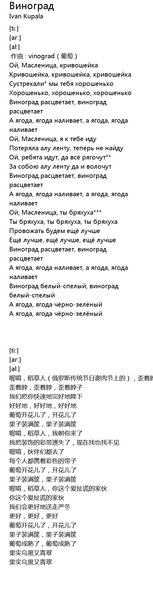| [02:36.82] | Виноград белый-спелый, виноград белый-спелый |