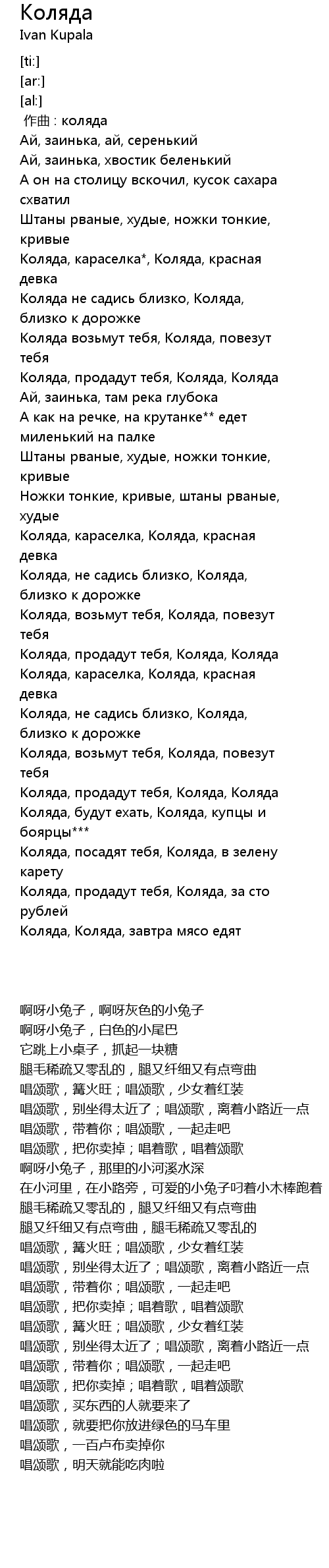 | [03:02.46] | Коляда, продадут тебя, Коляда, Коляда |