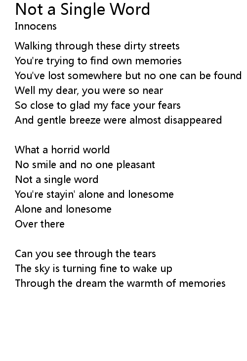 | 歌曲 | Not a Single Word |