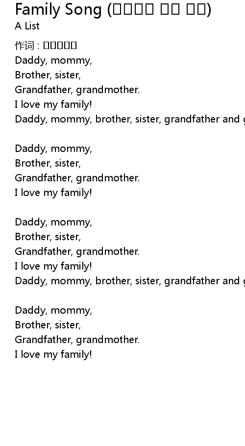 | 歌曲 | Family Song (사랑하는 우리 가족) |