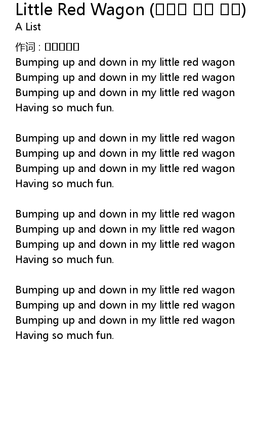 | 歌曲 | Little Red Wagon (귀여운 빨간 마차) |