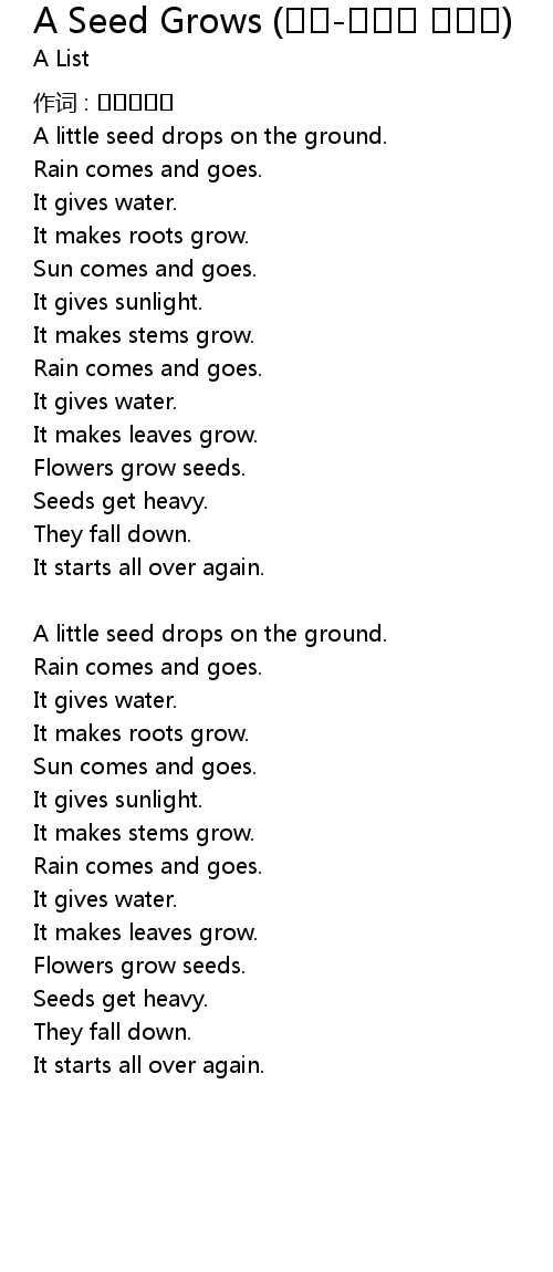 | 歌曲 | A Seed Grows (챈트-씨앗이 자라요) |