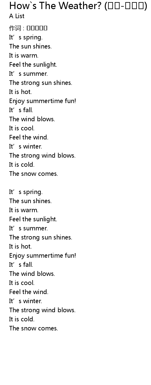 | 歌曲 | How`s The Weather? (챈트-날씨송) |