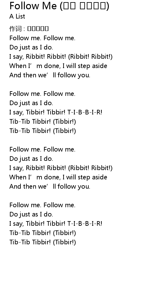 | 歌曲 | Follow Me (꼬마 청개구리) |