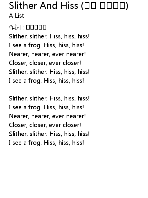 | 歌曲 | Slither And Hiss (꼬마 청개구리) |