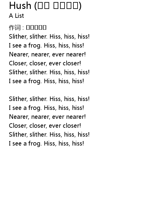 | 歌曲 | Hush (꼬마 청개구리) |